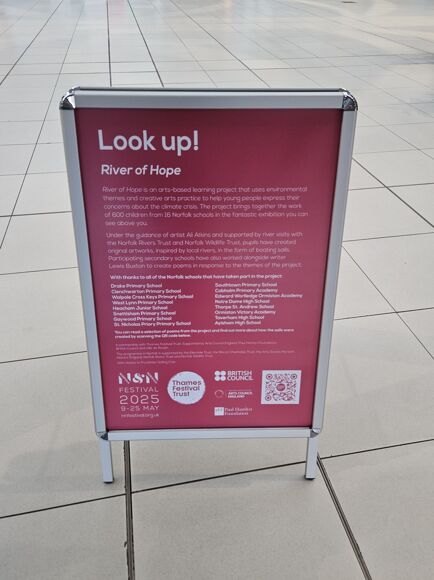 The sails designed by each school during the River of Hope Project are now on display at The Forum in Norwich, as part of this year’s Norfolk and Norwich Festival. This exhibition will be available until Sunday 25th May, and brings together the work of over 600 children across Norfolk in celebration of the region’s waterways.